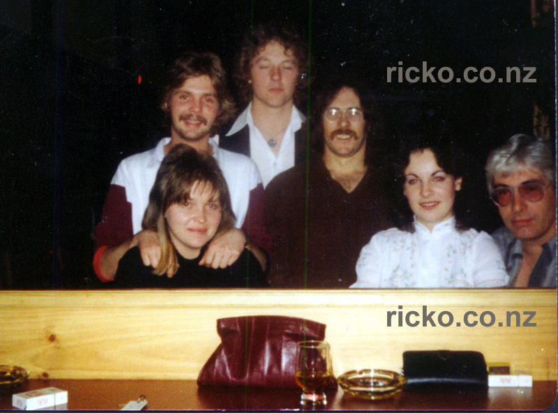 Above: Charles Bush - Becky Bush - Bartender (eyes closed) - Rick Warren - Buddy`s Girlfriend - Buddy Martin. At the Bellevue Gardens Upper Hutt Wellington 1979.