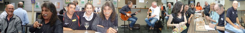 Above: Left / Top - Scotty singing karaoke with tribute slides - - Right / bottom Movie Clips: Some of the Musicians who jammed for Kens commemoration gathering at Grey Lynn RSC organised by Mark and Rick