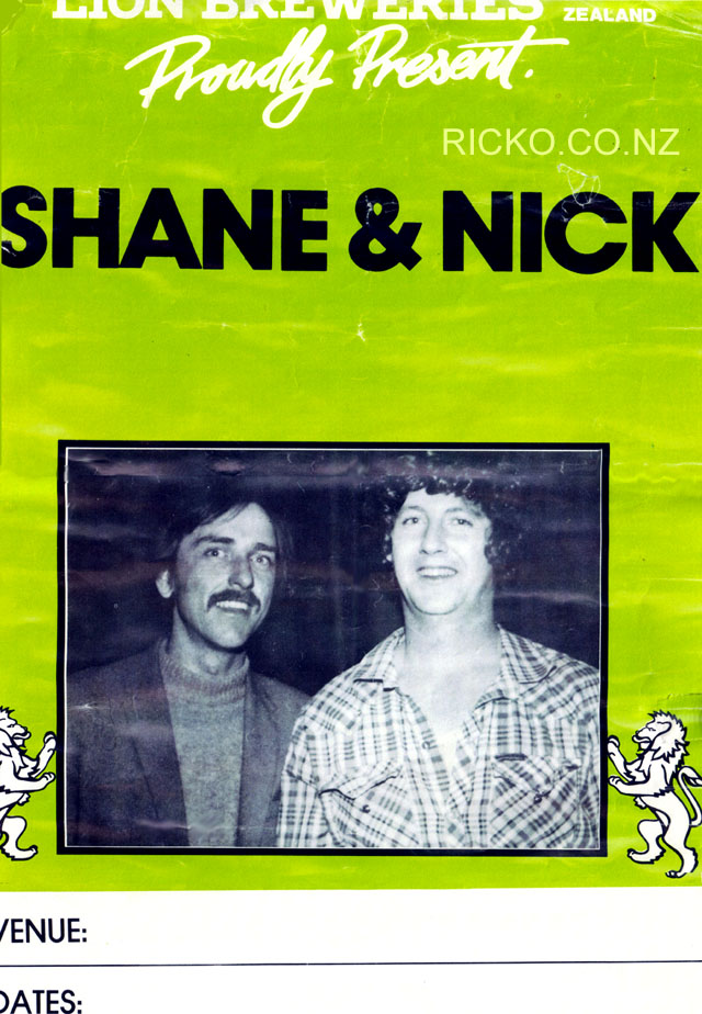 Shane and Nick 1980 - Formed in their hometown Blenheim where they gigged around the local pups, clubs and taverns etc, Later to be discovered by Aline Denton of the Lion Brewery circuit around 1983, where the duo went on to tour the North Island and played at all the Cobb & Co bars with their trusty Roland 808 drum machine...(Information and pictures C/- ricko.co.nz NZ Circuit Bands and Musicians)