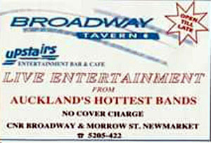 Nightshift Duo worked numerous venues around Auckland and NZ and had residencies at many of the below gigs - Lion Circuit - Portage Trust - Waitakere Trust - New Orient Restaurant Strand Arcade Auckland 6yrs - Cosmopolitan Clubs in Auckland - Bars and clubs North Island - Beauty Contests - Airforce, Army, and Navy dances and events - Cameo Lounge Dargaville - Birkenhead RSA - Henry The Eighth Nightclub Whangarei - Butts Kawarau - Westward Ho - Inner Circle Avondale - Maceys Bar Auckland - Wellsford Inn - Margaritas Bar Taupo - Lakeside Establishment - Gables - Wellsford Inn - Warkworth Tavern - Dargaville Hotel - Abbeys - Birdcage - Alexandra - Mon Desir - North Harbour Arms - Upstairs (Newmarket) - Shakespeare - Birkenhead Inn - Birkenhead RSA - Takapuna RSA - East Coast Bays Club - Upstairs Bar Broadway Their Card Below:.