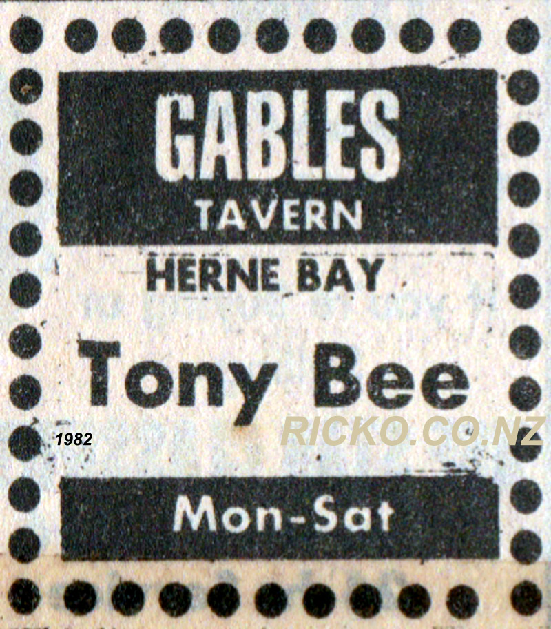 Tony Bee: An entertainer on the Lion Brewery Circuit during the 1980s, Guitarist vocalist. Above pic: Gables Ponsonby Auck 1982