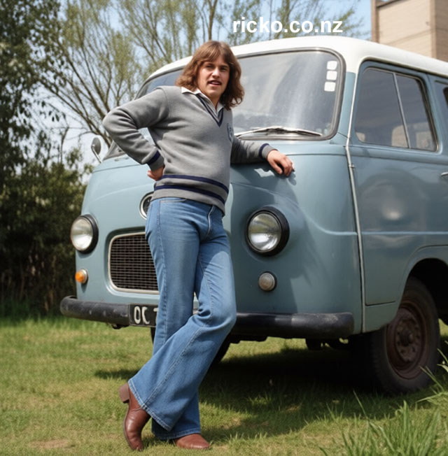 Above: Rick Warren (Drums) with Fiat Van - City limits had two band-wagons the other a Morris Minor van owned by Ron Topp (Keyboards)