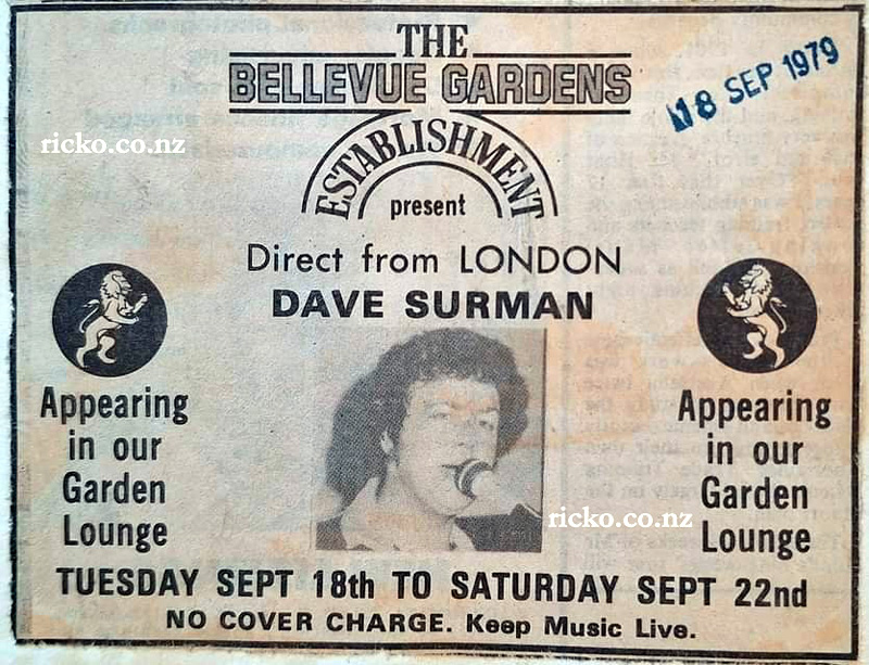 'Dave Surman - popular Lion Brewery circuit soloist from London 1978 - 1979 playing a good range of pop hits and a lot of Dylan.