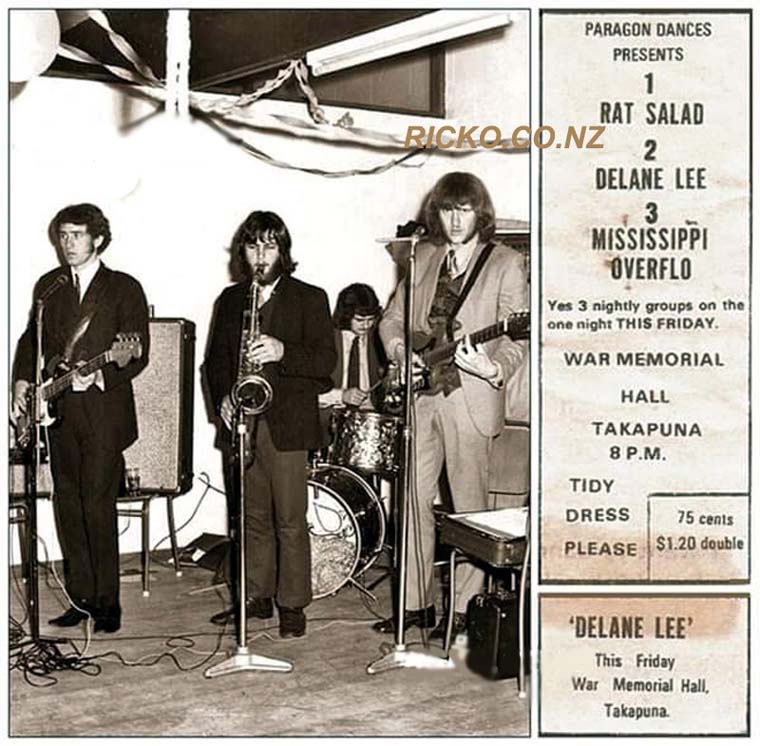 Delane Lee 1968 - 1970. By the time of the Paragon Dances at the War Memorial Hall in Takapuna (1970 Auckland Star newspaper clipping above), Kimber (who wanted to play jazz) and Haagh (who wanted to play Guggenmusik) had departed the band, the latter being replaced by Bruce Beesley. Upon Alan Stevens departure, Rick Warren fresh from Christchurch band "The Heritage" took his place after an audition held at Moller's Barn at Oratia in May of 1970. This new lineup named themselves "Amber"