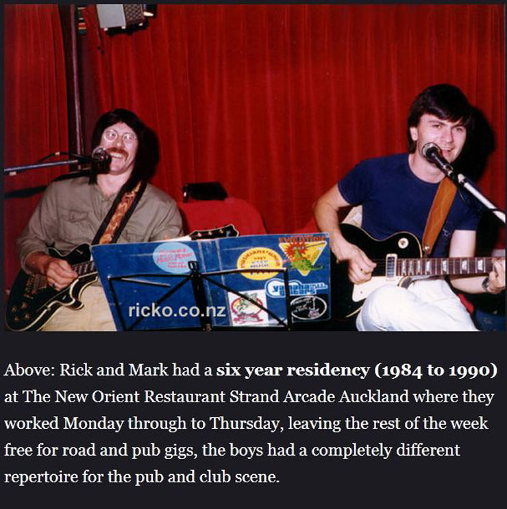Above: Rick & Mark seated playing a resident gig at the Potters Wheel Tavern New Lynn. Solo entertainer Dave Cowell (RIP) was also resident at the Potters Wheel for many years.(The Potters Wheel Tavern, the Pioneer Tavern HSN and Te Atatu Tavern along with the Westward Ho Tavern in Glen Eden sadly no longer exist)
