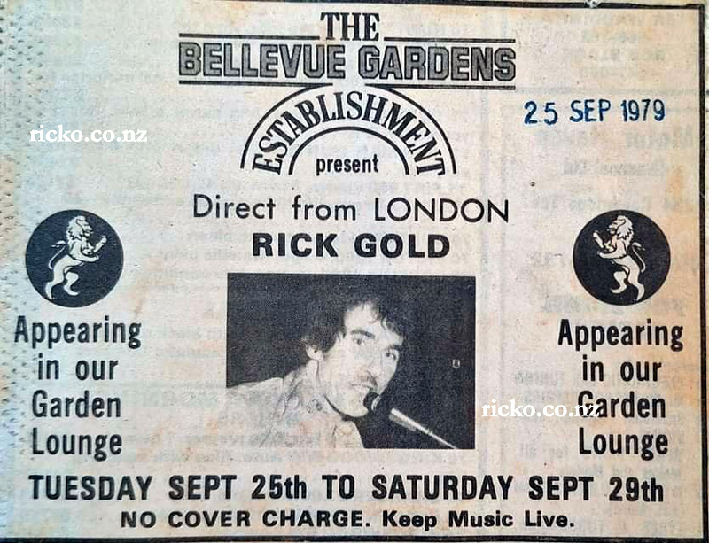 'Rick Gold - popular Lion Brewery circuit soloist from London 1978 - 1979 playing a good range of pop hits, great rock n roll, always filled the floor.