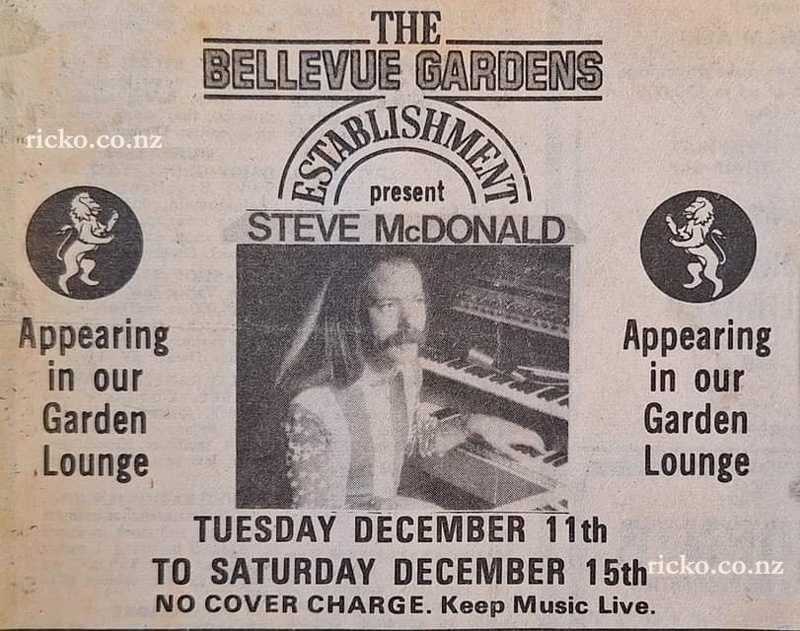 Steve McDonald Lion Brewery Circuit 1978 - 1990, Dynamic panoramic sound of a superb keyboard talent and strong vocals specializing in Celtic fusion, In the past has performed in rock bands Timberjack, Dizzy Limits, and Human Instinct. Steve is still entertaining crowds today (2025).(Information and pictures C/- ricko.co.nz NZ Circuit Bands and Musicians).